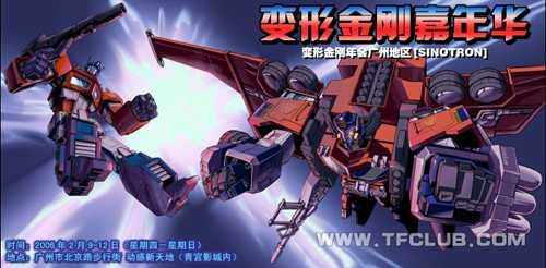 作為TFCLUB.COM在2006的年會系列活動之一,廣州地區選擇了與動漫嘉年華合作,更好地拓展了活動范圍,以達到分享變形金剛快樂的年會宗旨。我們將與廣大動漫迷一起度過這個盛大的節日。屆時,我們將會展示一系列珍貴的變形金剛經典玩具以及相關的動漫產品,還會有精美的紀念品與大家分享,同時我們在現場還將組織一些互動游戲節目以及迷友交流活動,歡迎熱愛變形金剛的朋友光臨!