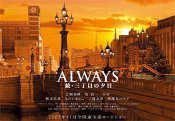 去年被公映並獲得日本奧斯卡金像獎12項大獎的大人氣漫畫改編電影續篇《ALWAYS續·三丁目的夕陽》(明年11月公開預定),日前正式發布了制作決定。堤真一、吉岡秀隆等主要演員仍將加盟此作,續篇電影以前作4個月後的1959年(昭和34年)為故事舞台。遙望完成之後的東京塔,首都高速公路還沒有覆蓋的日本橋將成為與東京塔一樣的作品符號。