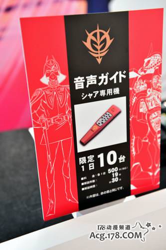 一進現場,可以選擇500日元的語音導覽,分為阿姆羅·古谷徹的「白之章」,以及亞夏?池田秀一的「赤之章」,白石冬美的「黃之章」三種。每天還有限定10台的“夏亞專用機”,解說內容與赤之章一樣,但有專用機特有的問候語,外形也是不一樣的。