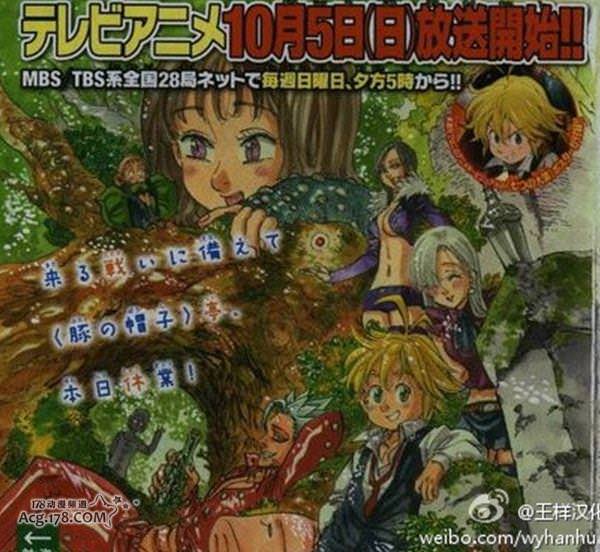 此前已經宣布動畫化的「七原罪」確定將在今年10月開播,動畫將從10月5日開始登陸MBS?TBS系日本全國28個電視台網絡,預計在每周日的午後17點開始放送。
