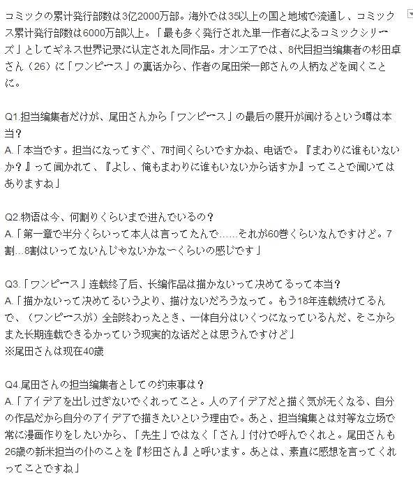 Q1:有傳聞說擔當編輯們都從尾田老師那里得知了OP的最終結局,這是真的嗎?