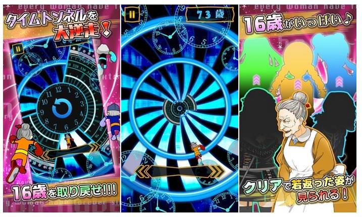 劇情主要描述老婆婆們突發奇想,想透過穿越時光隧道回到年輕時代,但她們需要你的幫助來安全抵達目的地。玩家只需要在游戲過程中不斷操縱老婆婆們左右移動,避開接踵而來的時空之壁就可以完成任務,並見識到每一位婆婆16歲時的撩人姿勢!