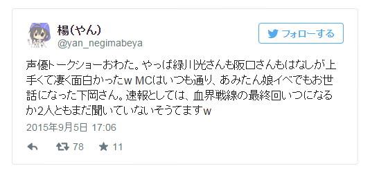 這個消息是網友在周六舉行的聲優座談秀上得知的,現場有綠川光和坂口大助兩位參演《幻界戰線》的聲優,不過兩人都表示並沒有聽說任何有關作品大結局播出時間的消息。這樣的爆料也令很多粉絲感到無比遺憾。再加上骨頭社接下來將制作多部作品,是否還有足夠人手繪制《幻界戰線》也成為了大家關切的問題。