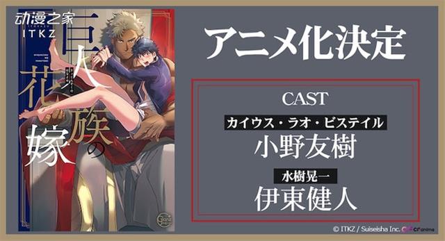 ITKZ創作的電子書籍《巨人的新娘》宣布了動畫化決定的消息,小野友樹和伊東健人將為兩名主角配音。