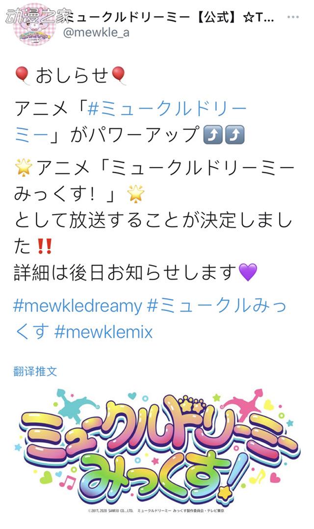 于今年5月播出的動畫《甜夢貓》的官方推特在今天發布決定將放送新系列《甜夢貓Mix!》的消息,詳細播出日期及內容將會在後續通知。