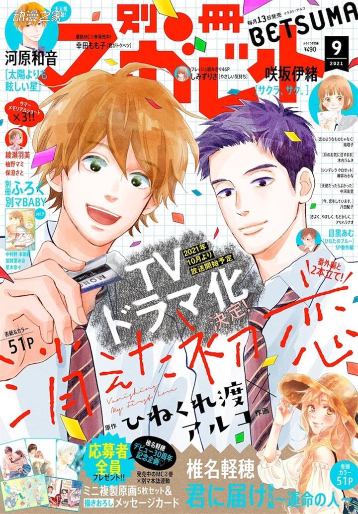 在本日(12日)發售的別冊瑪格麗特9月號(集英社)上,漫畫《消失的初戀》宣布了真人電視劇化決定的消息。本作預計將于10月開播,更多消息還將于日後公開。