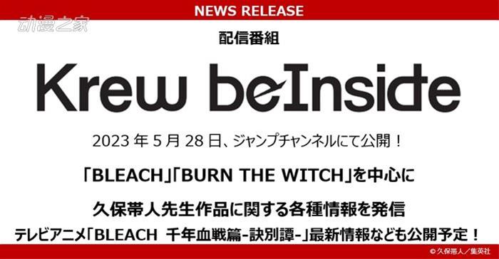 漫畫家久保帶人憑借《死神》《BURN THE WITCH》等作品為人熟知,而關于他作品情報的節目“Krew beInside”將在YouTube的JUMP官方頻道播出。