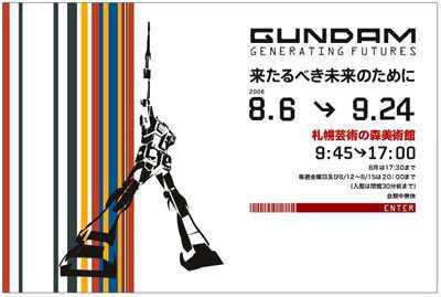 將人氣系列動畫《機動戰士Gundam》的世界,用現代藝術表現出來的作品展“GUNDAMU·為了應該來臨的未來”,日前在日本劄幌市南區的劄幌藝術之森美術館舉辦。Gundam系列作品是以浩瀚的宇宙為舞台,描寫了人類之間的戰爭的SF動畫片。在展覽會上,以“Gundam世代”為主題,映像導演和書法家等15組藝術家,以他們所認知的Gundam世界來進行創作,共計21件作品。票價是普通票1200日元,高中·大學生800日元,中小學生400日元。